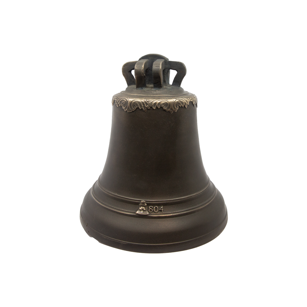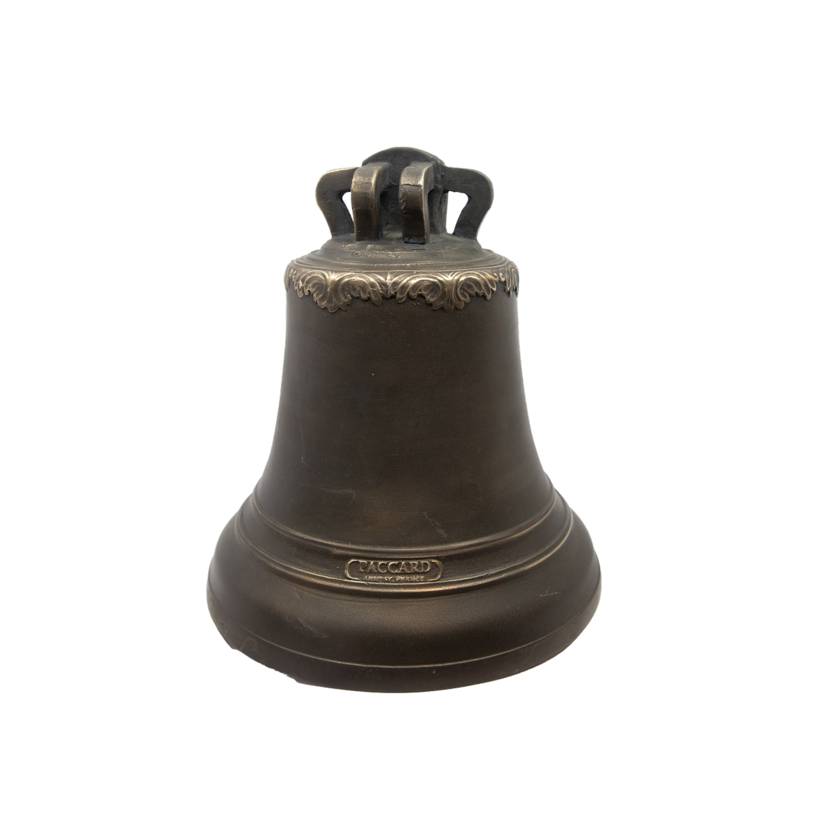 Cette magnifique cloche de 24cm de diamètre et pesant 13kg est disponible avec une magnifique patine bronze ancien et une frise en dentelle. Une belle pièce de fonderie, fine et élégante, à l'usage d'un salon ou même d'une petite chapelle.